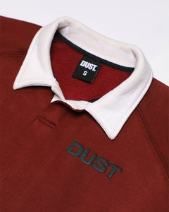 Featuring a crisp white polo collar, raglan sleeves for added comfort, and the minimalist "DUST" logo on the chest and patchwork at the back, this versatile pullover is perfect for layering or standalone styling.