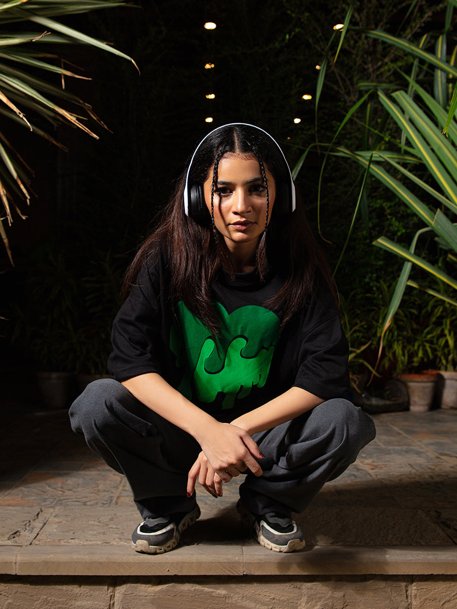 Make a statement with our "Bleeding Green Heart" tee from Dust. This bold, eye-catching design features a green heart with a twist - it's bleeding, symbolizing the scars and imperfections that make us human.
